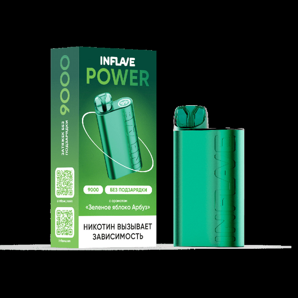 Электронная сигарета INFLAVE POWER 9000 затяжек Зеленое Яблоко Арбуз - купить в Туринске