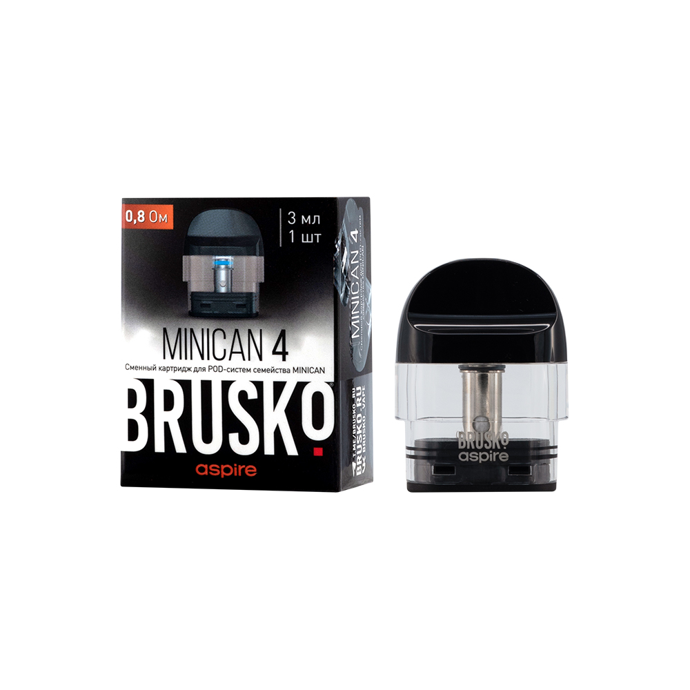 На складе Код товара: Сменный картридж Brusko Minican 4, 0.8 Ом (3мл) Черный