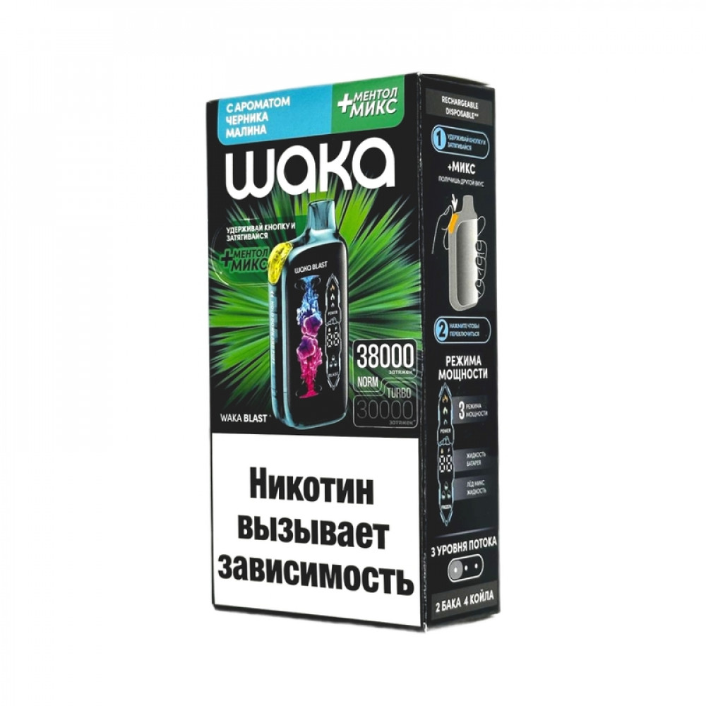 WAKA BLAST 38000 Hard - Черника малина + ментол микс - купить в Туринске